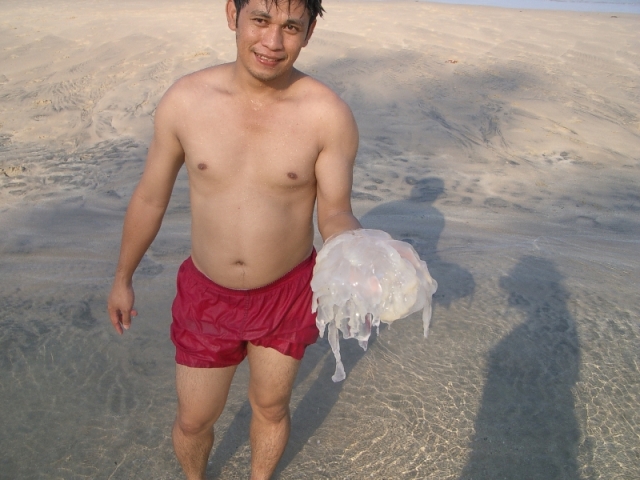 uimassa hiljaisuuden keskeytti Hannun parkaisu, meduusa oli polttanut jalkaan ison