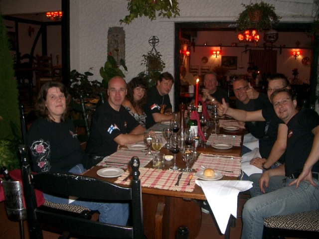 Illallista varten olimme varanneet pöydän. Ensin kokoonnuimme baariin tutkimaan ruokalistaa ja valitsemaan runsaasta ruokatarjonnasta sopivaa syötävää.