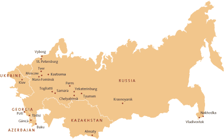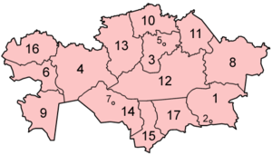 Kazakhstan jakaantuu 14 alueeseen ja 86 kaupunkiin.